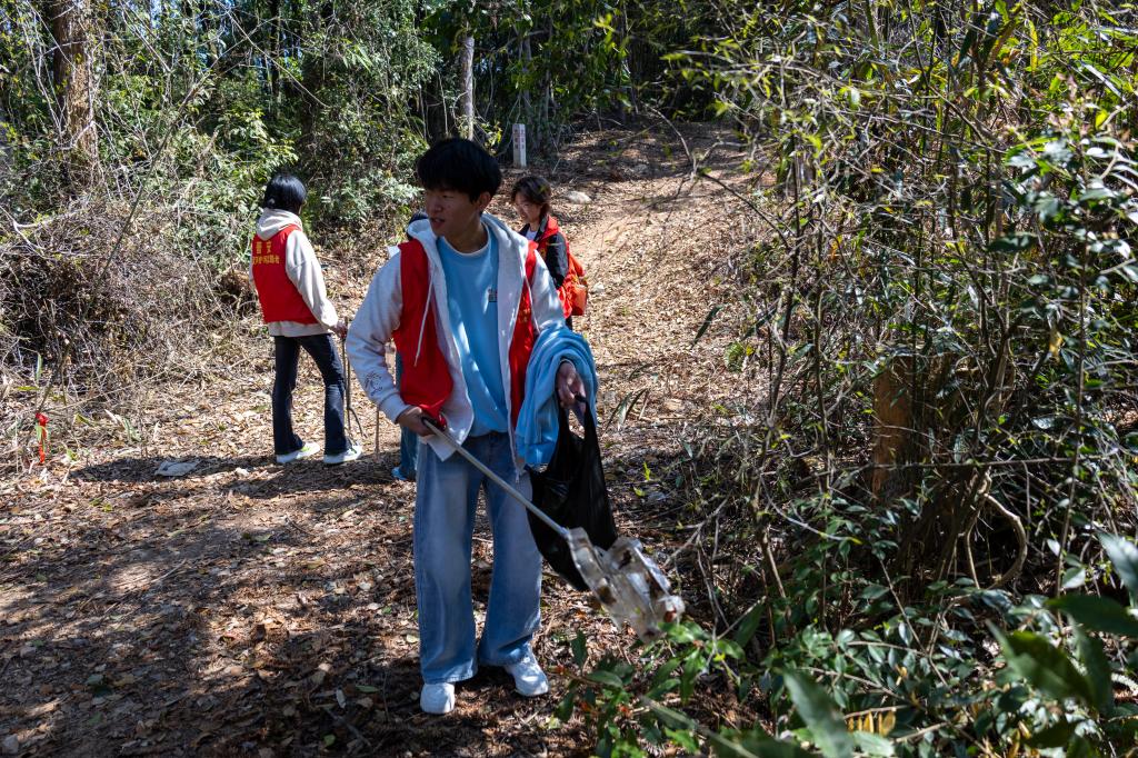 活动当日,志愿者们身着统一志愿服,沿状元岭绿道蜿蜒而上,手持垃圾钳、环保袋等工具,化身“环境卫士”与“温暖使者”,目光专注地搜寻着散落在步道两旁的塑料瓶、烟头、食品包装袋等各类垃圾,以点滴行动守护山岭。
