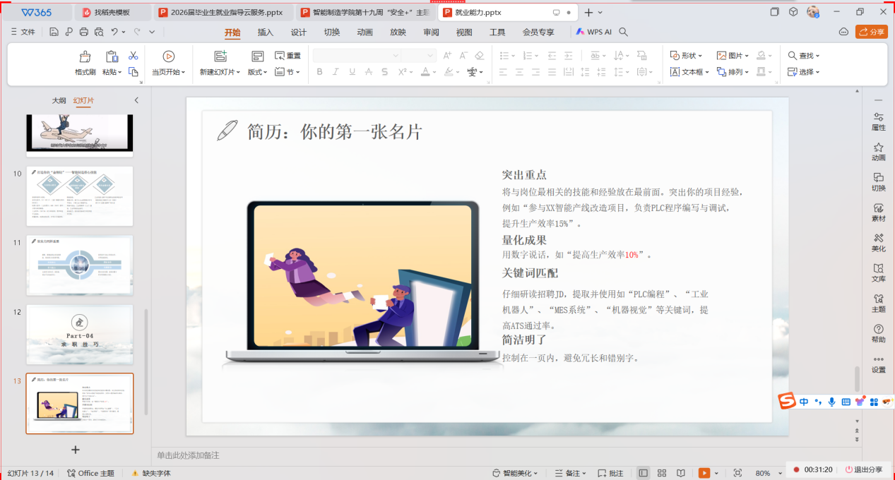 活动还针对求职能力展开指导,从“简历制作”到“面试技巧”进行系统讲解,帮助学生打造专业简历,掌握临门一脚的关键能力,提升求职成功率。