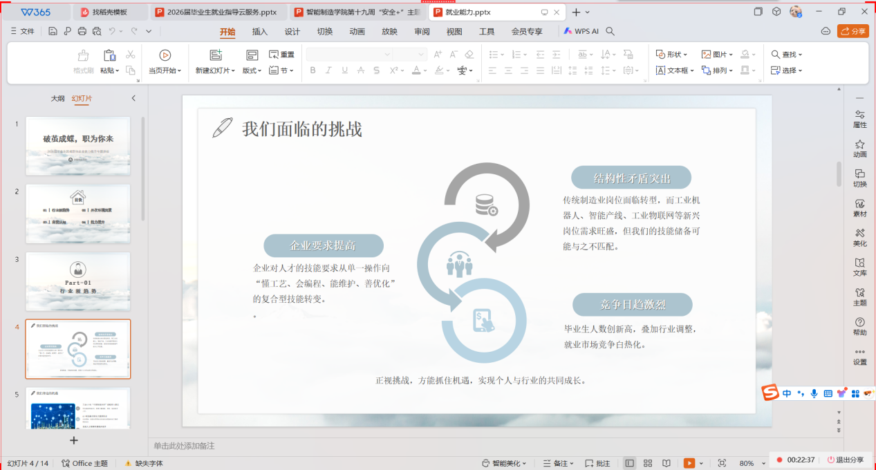 活动中,辅导员深入剖析了当前智能制造领域面临的结构性矛盾与发展机遇,引导学生正视挑战、主动适应行业变革,助力学生建立清晰的职业定位。随后,辅导员重点强调了智能制造核心技能的培养与“软实力”的同步提升,鼓励学生打造属于自己的“金刚钻”,增强就业竞争力。