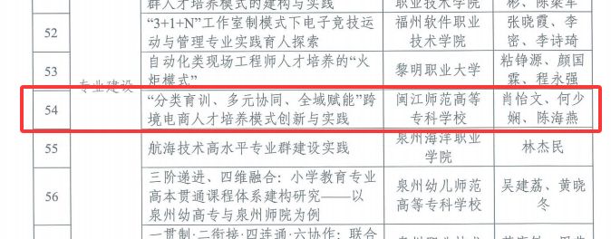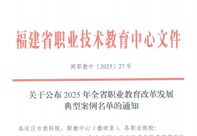 近日,福建省职业技术教育中心公布2025年全省职业教育改革发展典型案例名单,我校专业建设典型案例《"分类育训、多元协同、全域赋能"跨境电商人才培养模式创新与实践》与产教融合典型案例《"四链协同、集智赋能"数字经济市域产教联合体建设的探索与实践》双双入选。