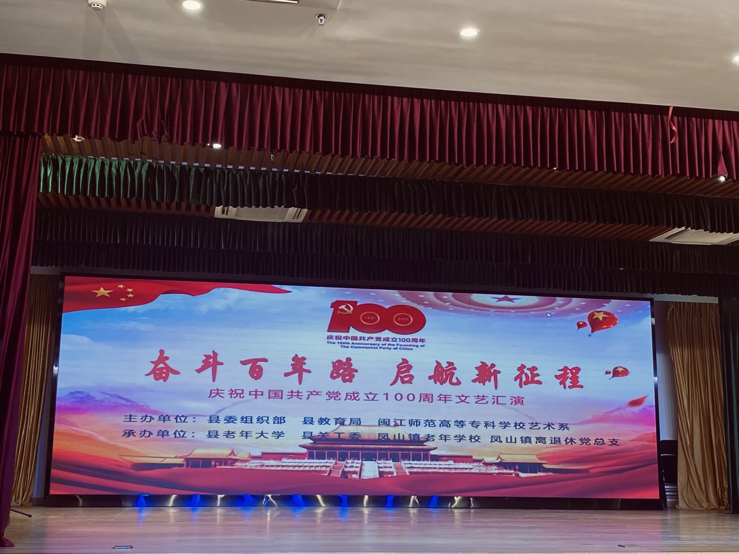 6月24日晚,我系与罗源县委组织部、罗源县教育局在罗源县老干局礼堂共同举办“奋斗百年路,启航新征程”庆祝中国共产党成立100周年文艺汇演。