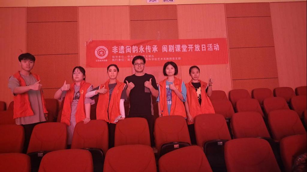 本次活动也是艺术系教师党支部“非遗闽韵永传承”志愿服务创新项目的一个重要内容,共有10名党员志愿者报名参加了本次活动。志愿者们积极主动承担了场地布置、嘉宾迎送、舞台后勤、道具设备搬抬、化妆助理等幕后工作,他们以实际行动展示了志愿者的风采。