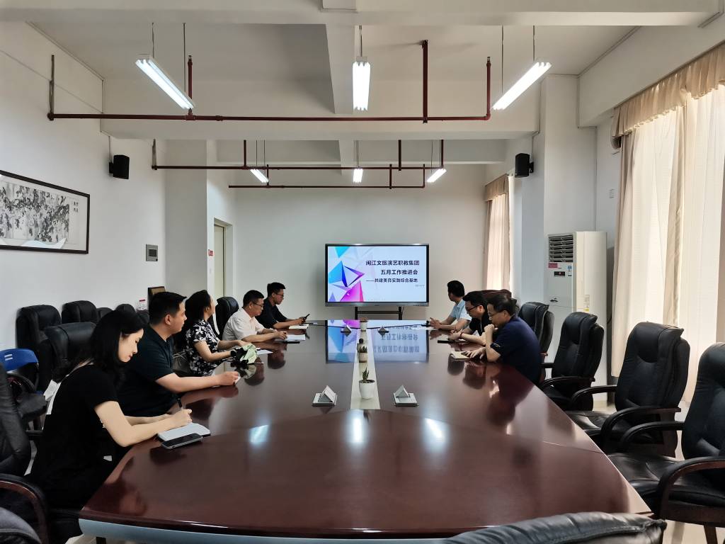 2021年5月17日上午,闽江文旅演艺职业教育集团在闽江师范高等专科学校旗山校区七层会议室召开五月工作推进会。职教集团董事长徐青、闽江文旅演艺职教有限公司总经理兰爱民、龙旺集团校企合作部总监李梁裔、福州旅游职业专科学校副校长、教务主任,福州文教职业专科学校副校长及其他相关教师出席了本次会议。