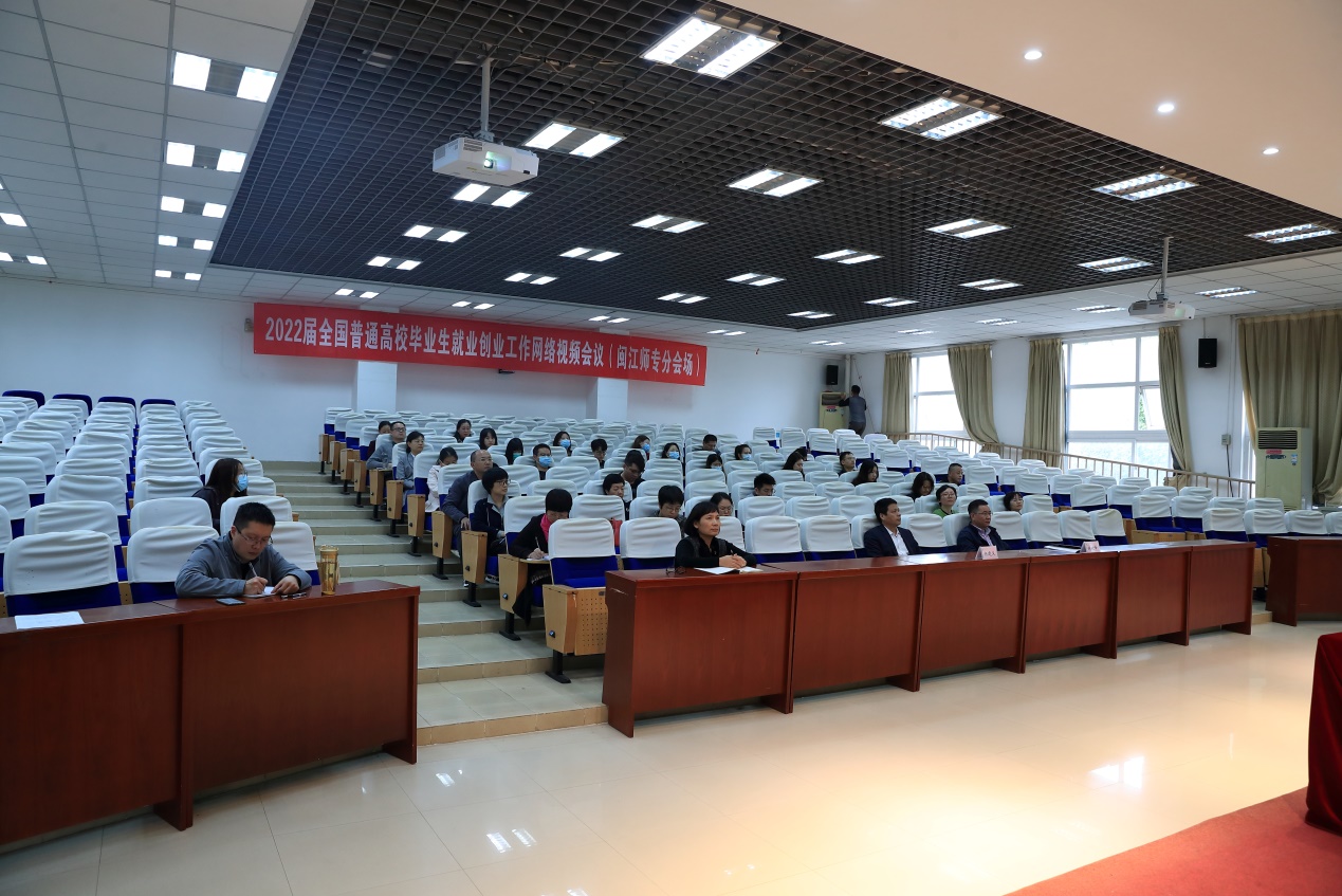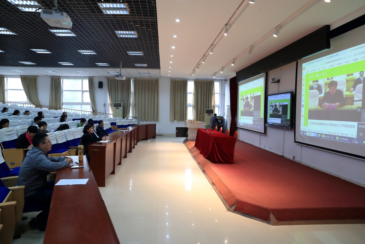 我校设分会场收看此次会议,杨建义校长、谢敏峰副校长出席会议,学生处负责人、院系主要负责人、院系党总支副书记及全体毕业班辅导员等40余人参加收看。