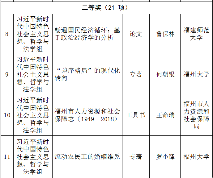 为了贯彻落实党的二十大精神,激发全市哲学社会科学工作者的积极性和创造性,近日,福州市人民政府公布了福州市第十一届社会科学优秀成果奖获奖清单。