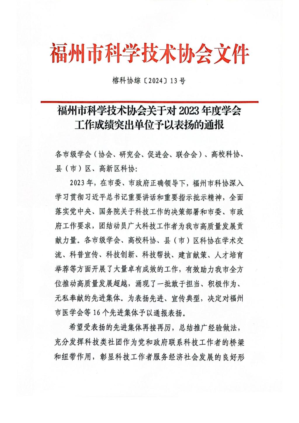 我校科学技术协会成立于2018年。自成立以来,校科协技术协会连续组织了我校教师参加市科协重点调研课题项目申报、学会(高校科协)联村联企送科技项目申报、科协自然优秀论文评选、福州市科协年会闽江师专分会场活动、福州市科协社团行业党委党员共建活动、省市科协年会主会场活动等,在学术交流、科普宣传、科技帮扶、建言献策等方面开展了系列工作、取得了一定成效。近日,我校科学技术协会被福州市科学技术协会授予“2023年度学会工作成绩突出单位”。