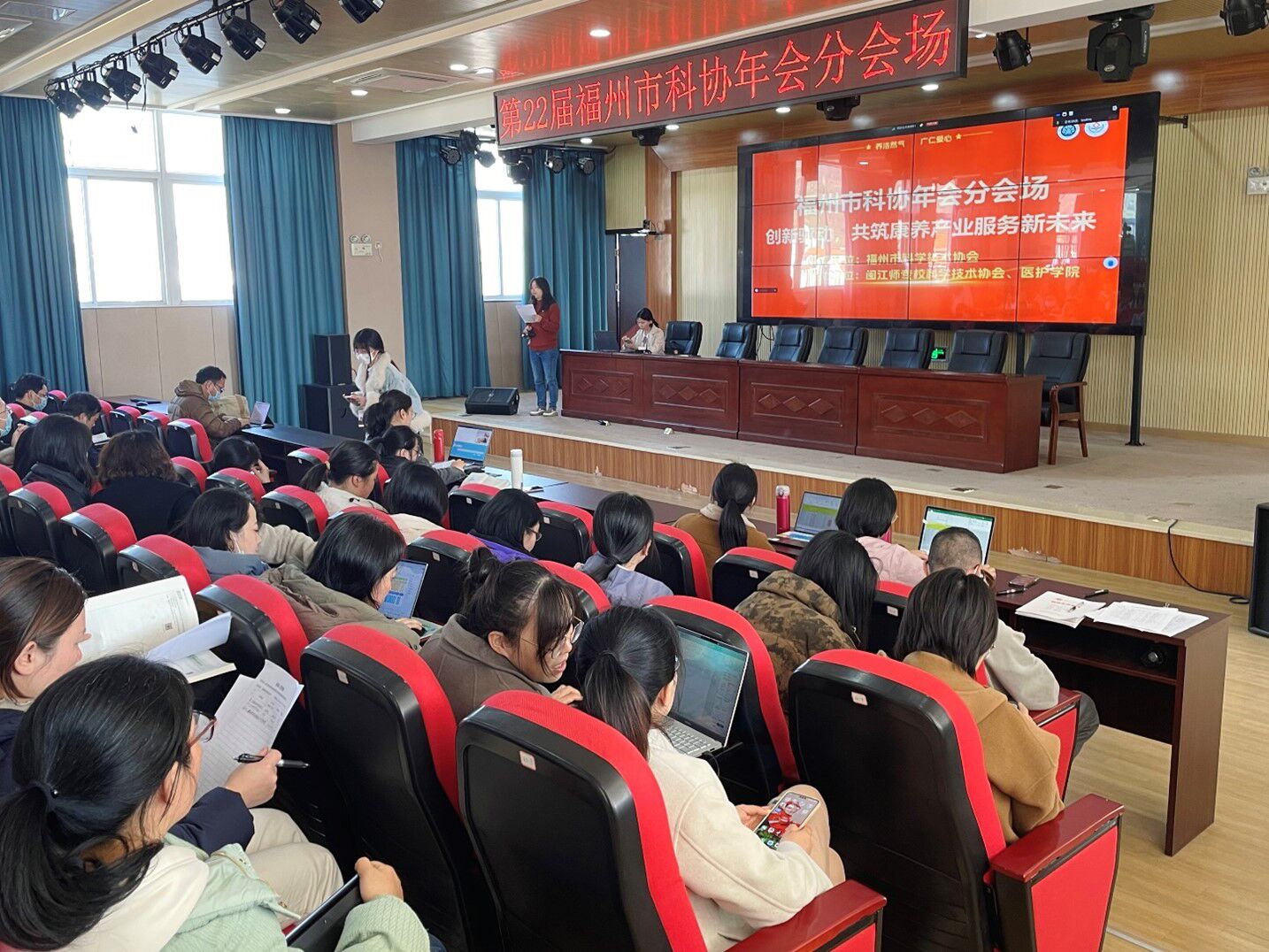 2024年12月18日,第22届福州市科协年会闽江师专分会场——“创新驱动,共筑康养产业服务新未来” 在闽江师范高等专科学校福清校区隆重召开。本次会议聚焦康养产业服务领域的核心议题,汇聚专家学者、行业代表,为福州市康养产业的高质量发展开启智慧交流与合作的新篇。本次年会分会场活动由校科学技术协会、医护学院共同承办。