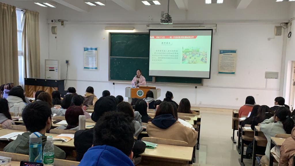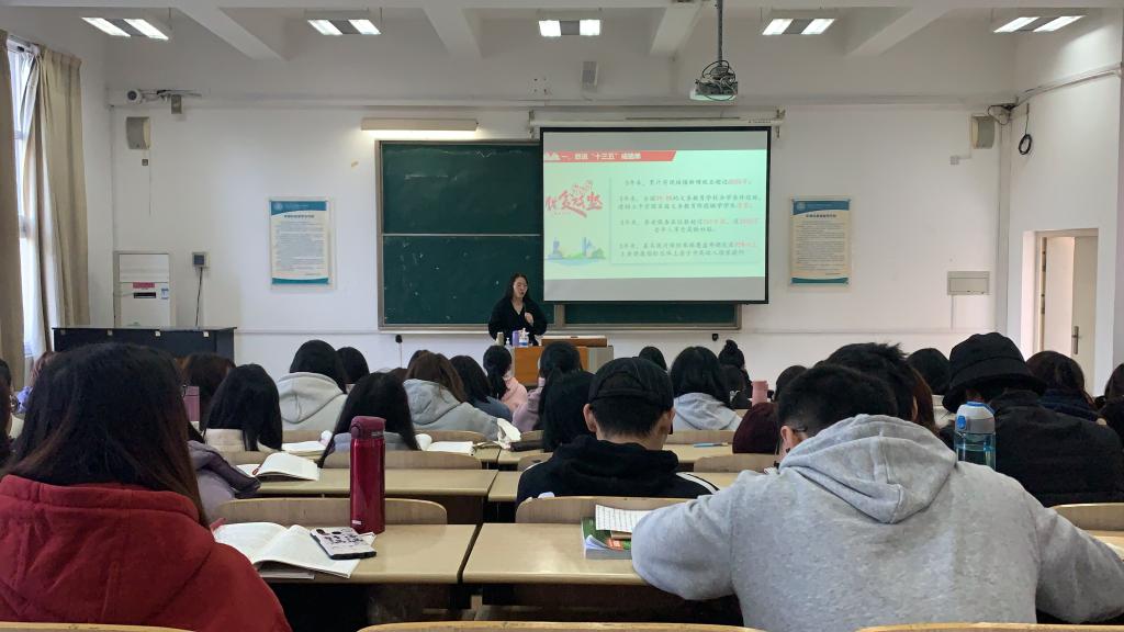 为深入学习领会党的十九届五中全会精神,习近平新时代中国特色社会主义思想读书社指导教师张兆延带领部分社员走进班级宣讲党的十九届五中全会精神。社员们从“诗”说十九五、“书”写十九五、“图”说十九五、“法”说十九五、“歌”颂十九五等不同方面讴歌了十三五时期党领导人民建设祖国取得的新的伟大成就,抒发了国家十四五时期发展目标及2035远景目标,并联系自身实际,畅谈了未来五年、十五年个人发展规划,激发了同学们的爱国之情、报国之志。同学们一致表示要学习领会好全会精神,努力做到学思用贯通、知信行合一,勇敢肩负起时代赋予的重任,书写人生绚丽的华章。