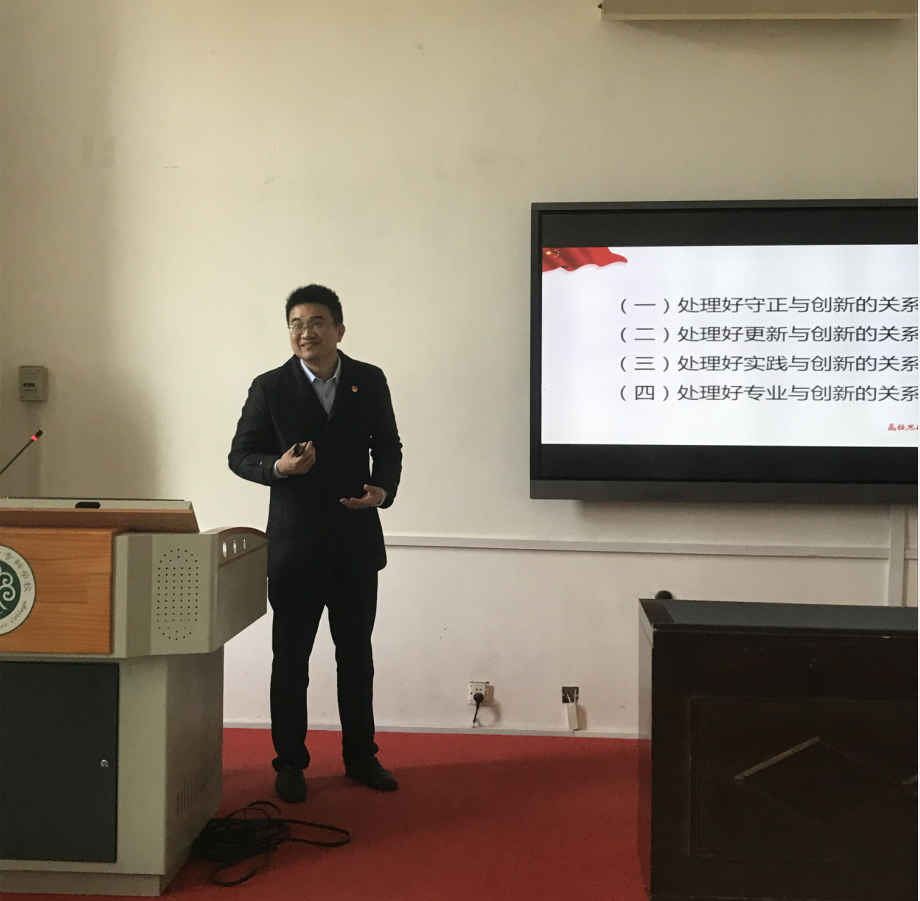 首先,闽江学院陈东副教授应邀进行示范教学。陈老师用生动幽默的语言、精致合理的设计,为师生们讲授《让改革创新成为青春远航的动力》,课堂教学贴近时事、贴近学生生活实际、联系学生专业。陈老师娓娓道来,让学生们真切感受思政课的课堂魅力。随后,他围绕“守正与创新”“更新与创新”“实践与创新”“专业与创新”四个方面与大家一起探讨如何上好思政课。
