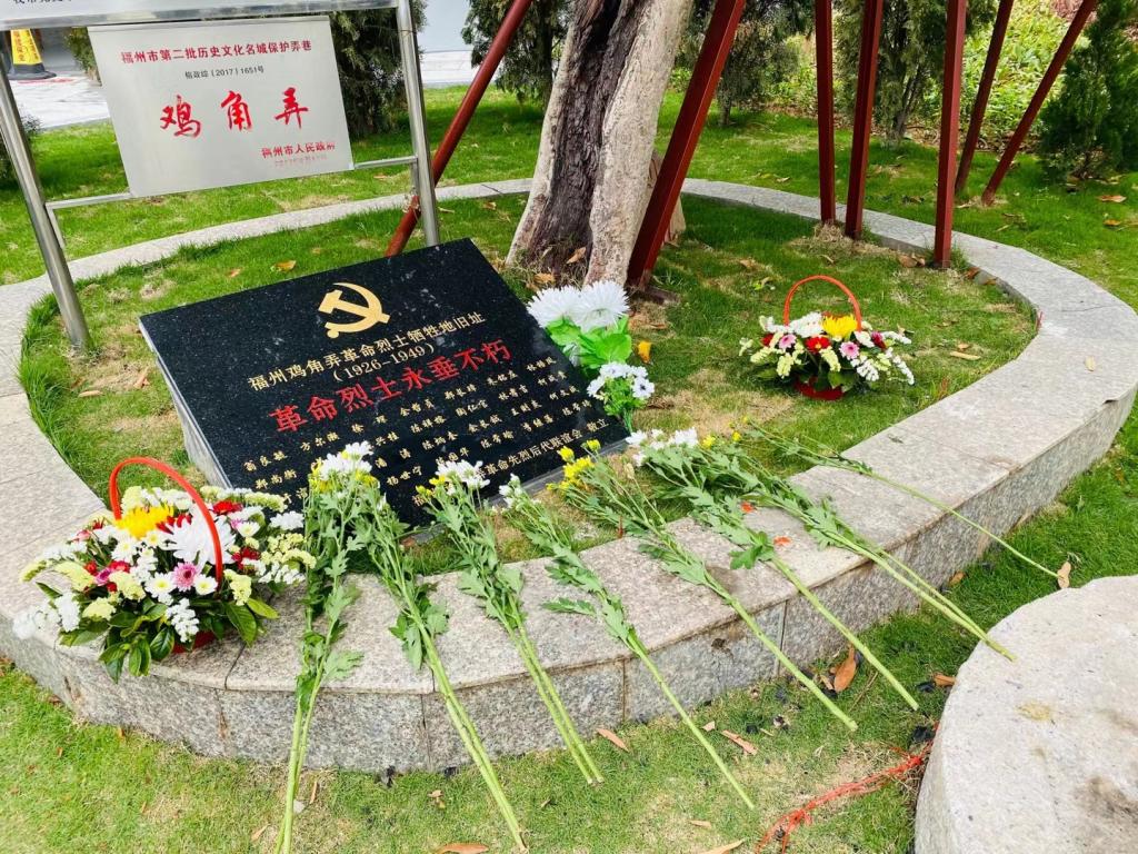 随后,社员赴革命烈士学长翁良毓就义的地方“鸡角弄”,现场聆听翁良毓学长的后人为我们讲述关于他“此身不做资产杰,有日甘为无产奴”的故事。青说新语宣讲团带领着大家同诵《不朽》,并献上亲手制作的白花表达敬意!