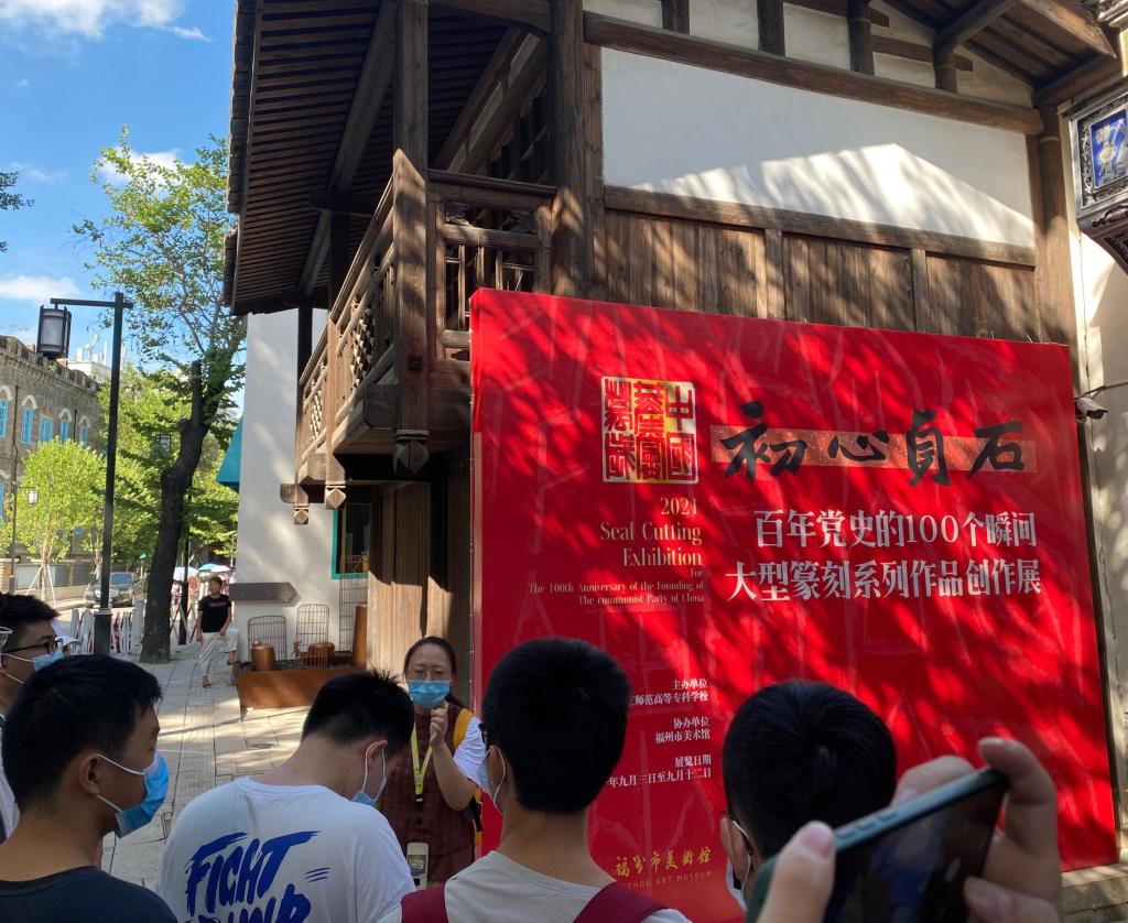 为庆祝中国共产党成立100周年,感受中国共产党百年奋进之历程,9月9日上午,马克思主义学院金雨青老师带领150名初等教育系学生前往福州市美术馆“初心贞石——百年党史的100个瞬间大型篆刻系列作品创作展”开展现场实践教学,为同学们带来一场别样的思政课。