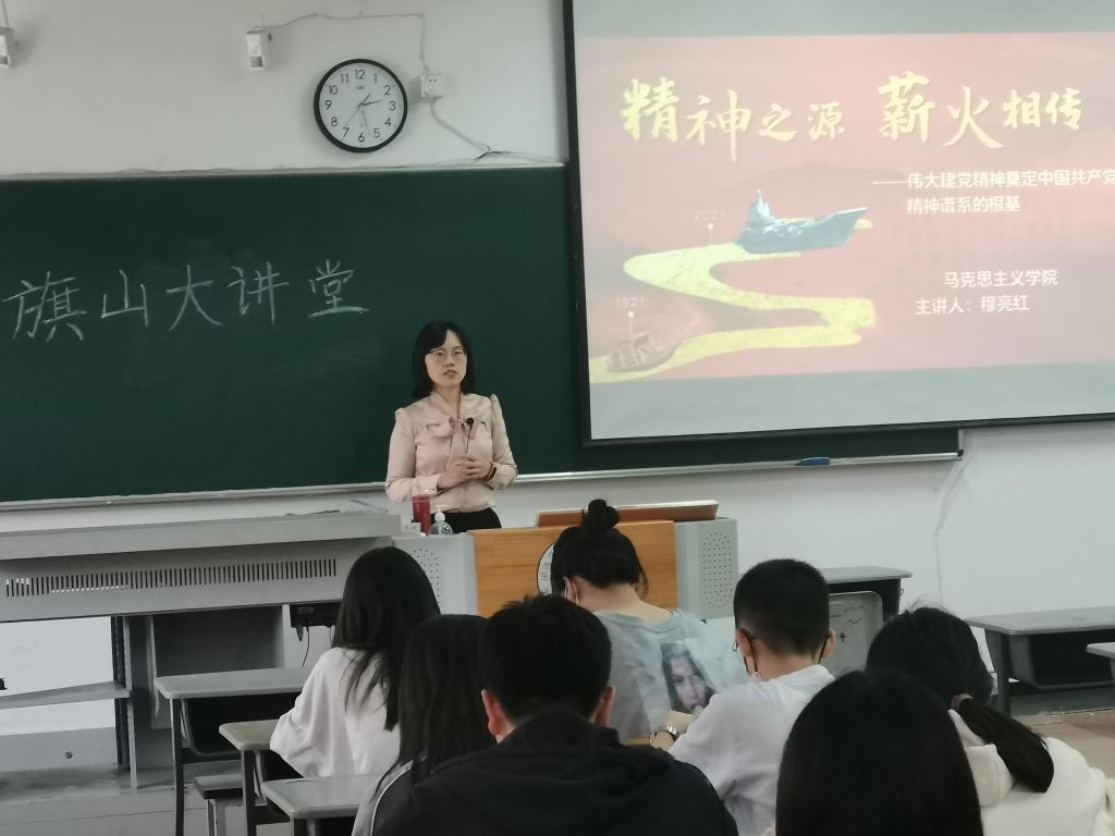 10月28日,马克思主义学院旗山大讲坛在仓山校区开讲,穆亮红老师以“精神之源,薪火相传——学习伟大建党精神”为主题,为化学与生物工程系学生开展讲座。