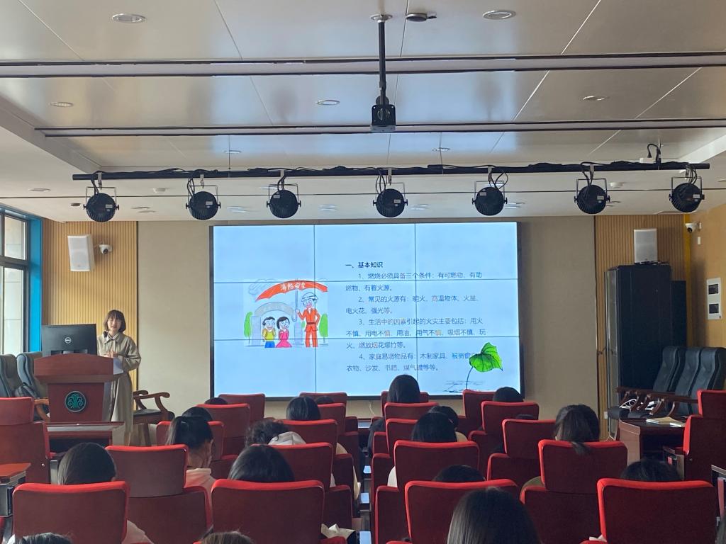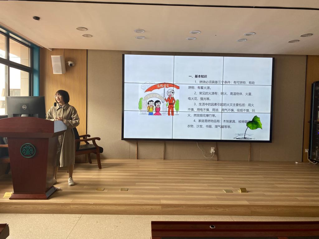 陈思慧老师首先介绍燃烧的原理,即燃烧需要有可燃物、助燃物和着火源,同时介绍常见火源及易燃物的种类。接着,她从公共场所和家庭等不同地点,详细介绍在不同情况下人们应当如何防止火灾发生,一旦发生火灾又该如何自救。最后,陈思慧老师强调,拨打火警电话时,必须报清、报全着火地址,说明着火的物质和火情的大小,再由熟悉情况的人为消防人员指引通道,及时消灭火灾。