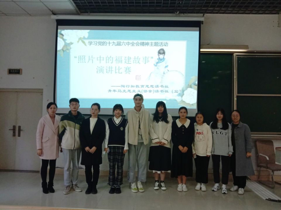 为深入学习贯彻党的十九届六中全会精神,以史为鉴,开创未来。12月1日中午,由马克思主义学院和校社团管理中心牵头,青年马克思主义协会(读书社)和陶行知教育思想读书社在旗山校区1018教室面向全校学生举办“照片中的福建故事”主题演讲比赛。马克思主义学院杨威涛和金雨青老师现场指导。