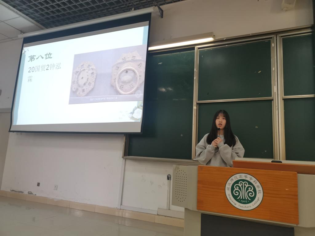 经过初审,共九位同学进入决赛。他们认真筹备,通过图片展示,激昂讲述图片故事,其中,20早期教育班连栋梁同学讲述革命战争时期冰心先生以报国心坚持人才培养,寻闽根、博爱人;20学前教育7班方锦怡同学带领社员“走进”长汀以及马尾魁岐革命公园;20国际贸易与实务2班钟泓霖同学深情叙述厦门鼓浪屿红色故事;20语文教育1班高鹭欣同学结合绿色生态主题将福州与榕树的故事娓娓道来……九位同学结合家乡特色,通过图片展示,传播福建革命文化和优秀传统文化。活动最后,金雨青老师和杨威涛老师为参赛选手点评总结。