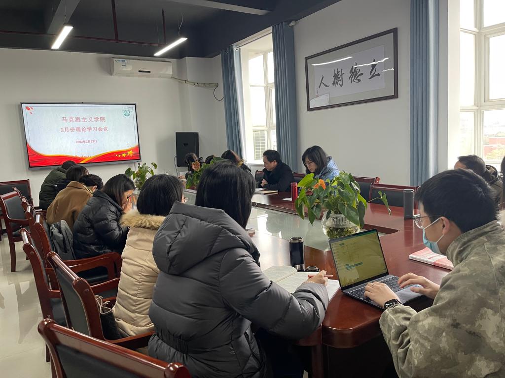 2月23日上午,马克思主义学院在党建活动中心召开2月份理论学习会议,会议由洪书源院长主持,学院全体教师参加会议。