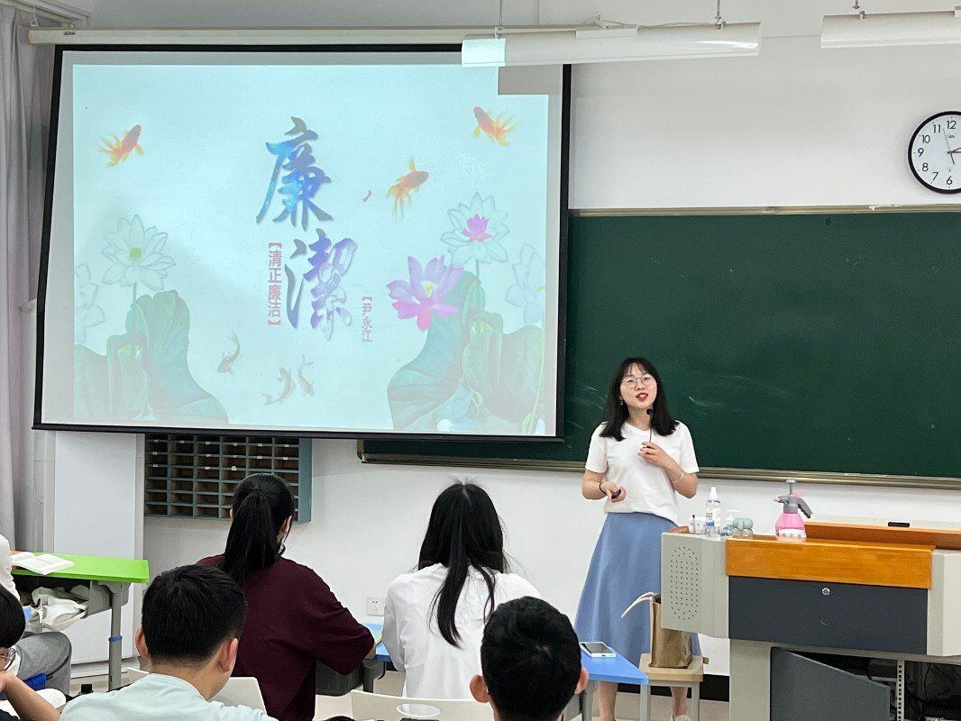 为深入学习中共中央办公厅《关于加强新时代廉洁文化建设的意见》,落实学校纪委创建廉洁校园、开展廉洁教育系列活动的要求,帮助广大学子“扣好人生第一颗扣子”,学院教师发挥思政课主渠道作用,在任教班级开展廉洁教育进课堂系列主题活动。以下为部分教师课堂教学展示: