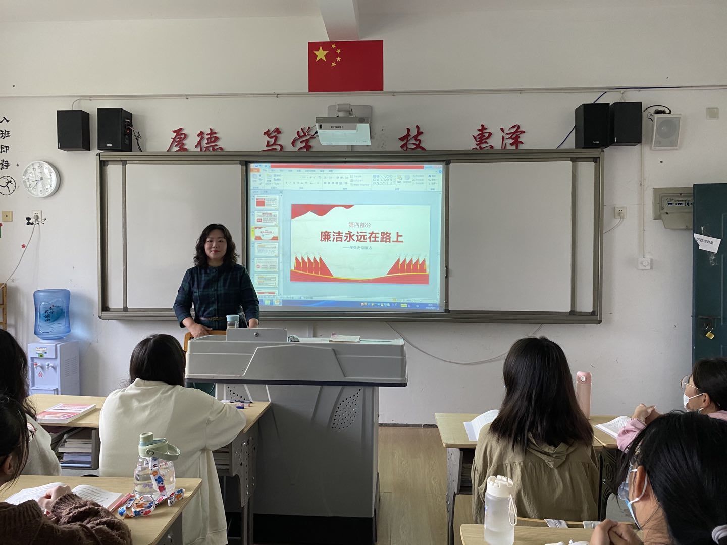 茅朝霞老师结合党史宣讲廉洁文化,希望同学们继承和发扬党在长期斗争中形成的光荣传统,提升自我修养,抵御外界诱惑。通过案例分析,她指出:历史是最好的教科书,我们要以史为鉴,做讲廉洁、有担当的人。