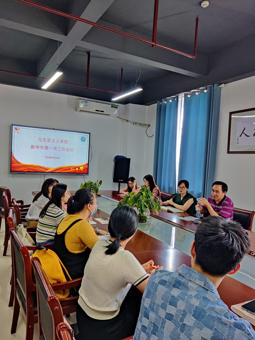 8月24日下午,马克思主义学院召开新学年第一次工作会议,院长洪书源主持,全体教师参加会议。