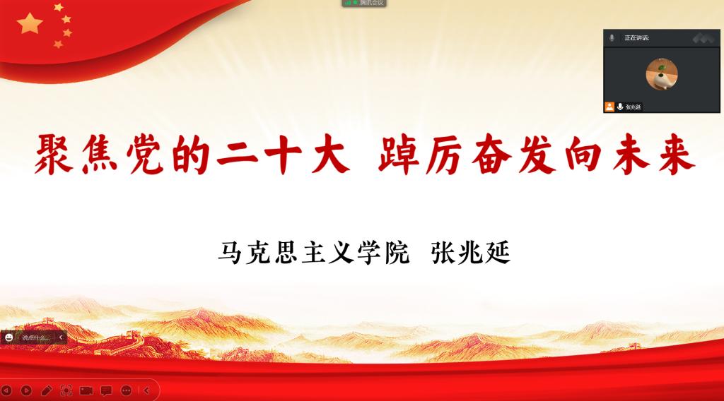 新时代画卷气吞山河,新征程篇章气势恢宏。为深入学习贯彻党的二十大精神,10月27日,习近平新时代中国特色社会主义思想读书社在线上举办“聚焦党的二十大,踔厉奋发向未来”研习会,两百多位同学参与此次学习。
