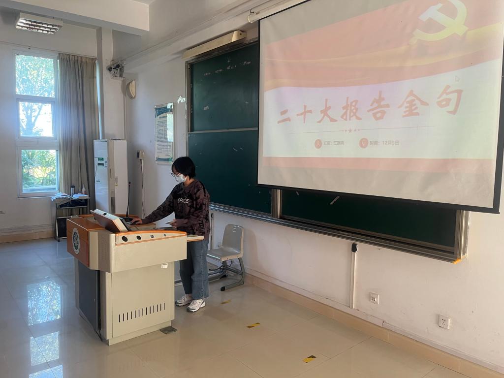 12月9日,中共党史读书社面向全体社员开展党的二十大精神宣讲活动,全体社员共同学习党的二十大精神。