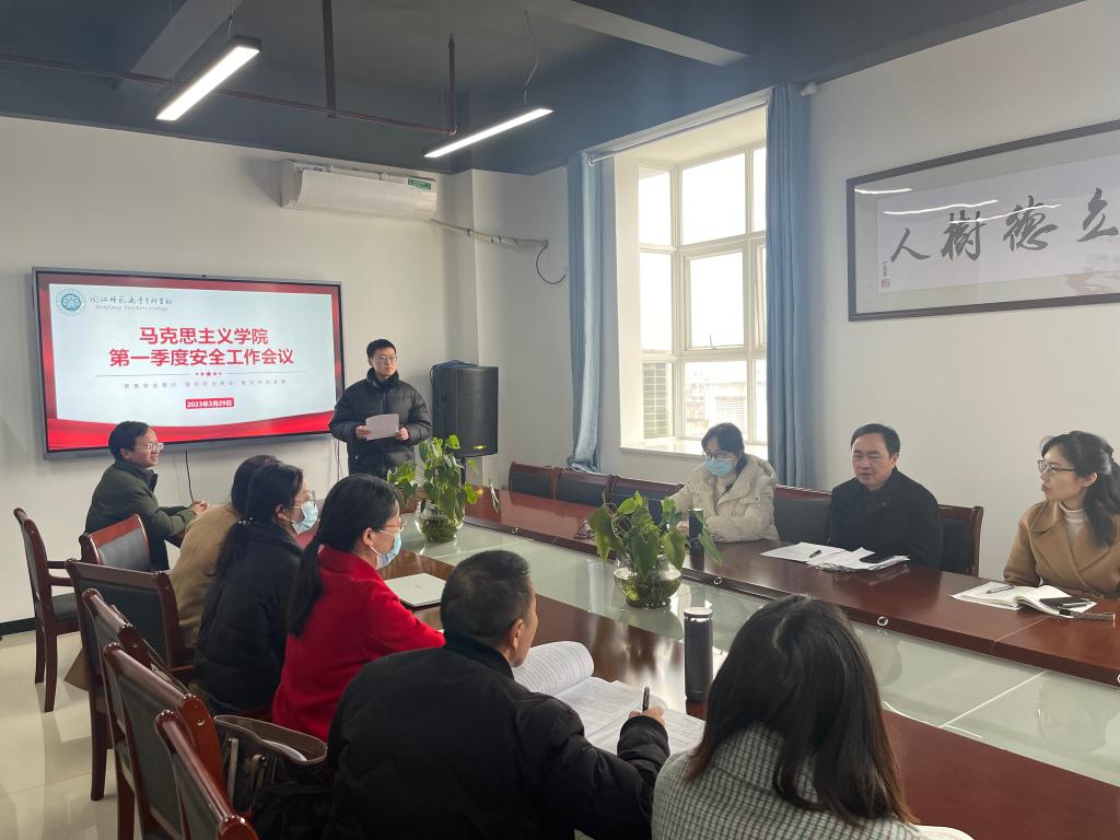 3月29日,马克思主义学院全体教师在616党建活动中心开展2023年第一季度安全工作会议。