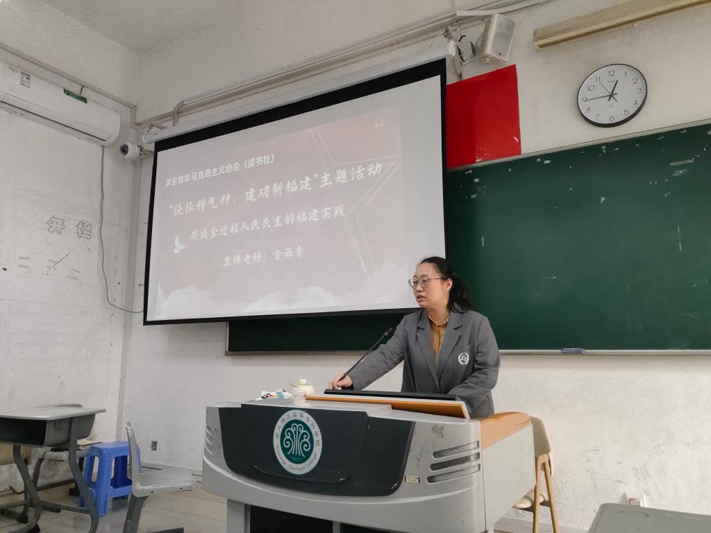 3月26日,学生青年马克思主义协会(读书社)举办“共谈全过程人民民主的福建实践”专题讲座,本次讲座由指导老师金雨青主讲。