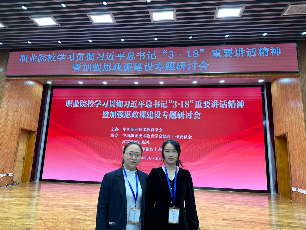 3月31日,职业院校学习贯彻习近平总书记“3·18”重要讲话精神暨加强思政课建设专题研讨会在北京召开。本次研讨会由中国职业技术教育学会主办,学会德育工作委员会、高等教育出版社、中宣部《时事报告》杂志社共同承办。研讨会旨在深入贯彻落实习近平总书记“3·18”重要讲话精神,总结交流各地各校加强思政课建设和深化思政课教学改革的典型经验和特色做法,更好发挥思政课作为落实立德树人根本任务的键课程的作用。金雨青、林双程两位老师参加会议。