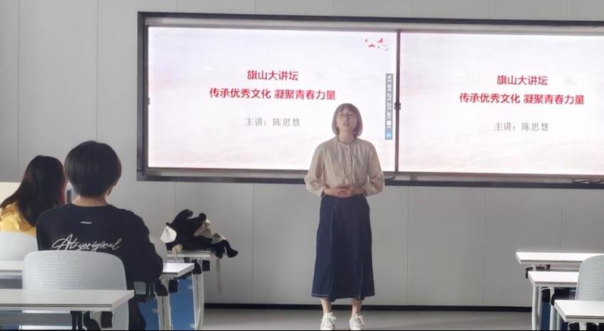 10月22日,马克思主义学院旗山大讲坛在旗山校区产创楼105开讲,陈思慧为学前教育学院学生做题为“传承优秀文化 凝聚青春力量”的专题讲座。