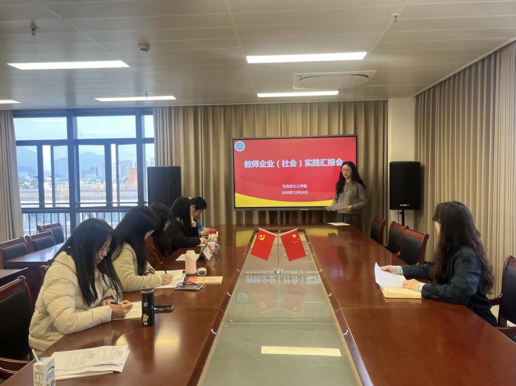 12月24日,马克思主义学院在学院810会议室组织开展2025 年度教师企业(社会)实践汇报会。会议由学院教师企业考核小组组长林志香主持,学院教师实践考核小组成员、相关教师代表参加会议。