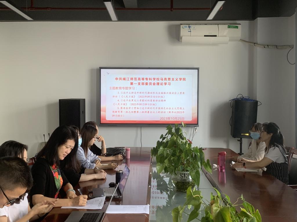 在支部党员围绕理论学习内容进行研讨交流后,支部开展本月主题教育活动。主题教育围绕“凝心铸魂筑牢根本——坚持不懈用习近平新时代中国特色社会主义思想铸魂育人”,“锤炼品格强化忠诚——忠诚拥护‘两个确立’,坚决做到‘两个维护’”,“实干担当促进发展——构建高质量教育体系,加快推进‘双高’校建设步伐”和《闽山闽水物华新——习近平福建足迹》进行。在本次理论学习会和主题教育会上,茅朝霞、翁文纯、尹永江、张兆延、曾玉婷、陈思慧、程兰芳、黄茜等老师分别对学习内容进行导读。