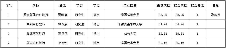 按照《关于印发〈福建省省属事业单位公开招聘工作人员考试暂行办法〉的通知》(闽人发〔2006〕11号)等文件要求,在面试、体检和考察合格的基础上,确定贾斡旋等4位同志为拟聘用人选,现向社会予以公示。公示期间,如有问题,请及时反映。