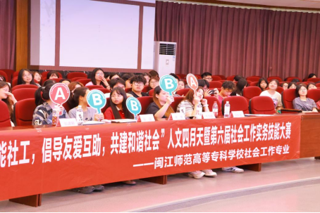 为深入贯彻落实国家职教政策,深化职业教育教学改革,加强实践教学,培养基层社会治理领域高素质“Al 复合型”人才。5月7日,我院成功举办人文四月天系列活动暨“Al 赋能社工,倡导友爱互助共建和谐社会”第六届社会工作实务技能大赛。现场有幸邀请到人文与管理学院副院长谢珊珊、福州市马尾区益乐社会工作服务中心项目主任黄鑫、社会工作专业教研室主任余晶以及专业教师张潇颖、叶佳媚、何昕柔担任决赛评委。