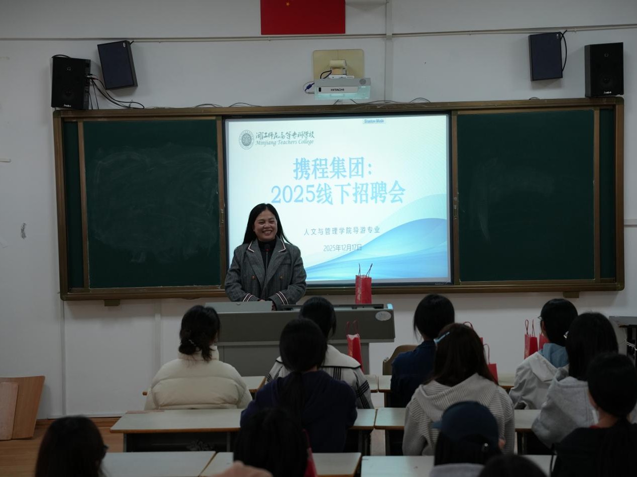 为助力导游专业在校生积累就业创业实战经验、明晰学业精进与职业发展方向,我校搭建在校生与优秀毕业生的交流桥梁,于12月10日、12月17日分别在仓山校区、福清校区举办导游专业优秀毕业生经验分享暨携程企业对接讲座。