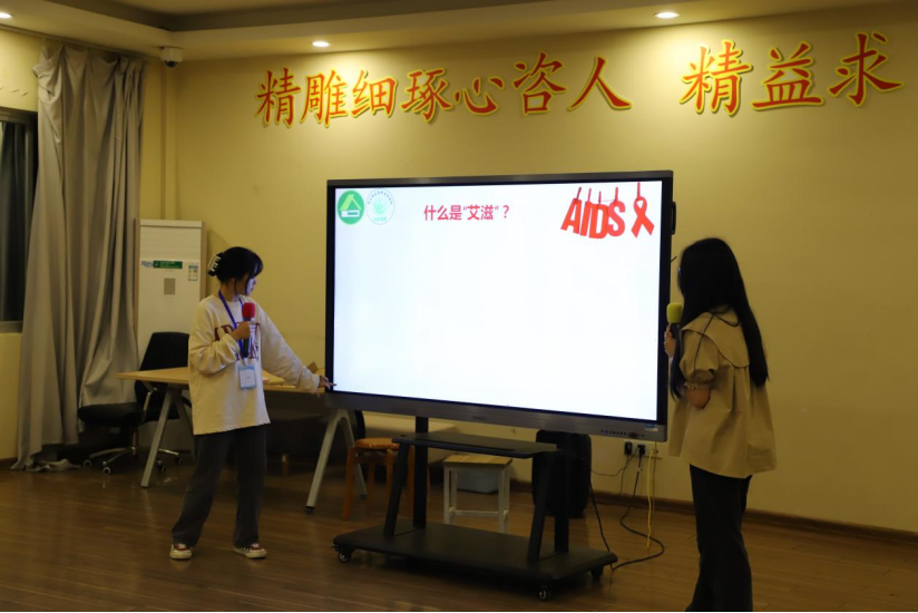 为了让学员们正确认识艾滋病,提高自我保护意识。青春健康同伴社于4月19日在仓山校区3-206开展“让艾止步,让我拥抱你”的主题活动,第二课堂成员与同伴社成员共同参与。