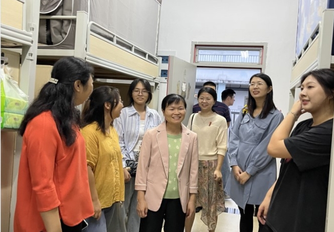 下午16时,院长陈勤、副院长谢姗姗、综合科科长张继驰、院团委书记黄益群、及各教研室主任、23级新生辅导员和班主任带队到学生宿舍楼看望新生,充分了解新生入学后存在的问题与困难,并提醒同学们要及时排查各类安全隐患,落实安全措施。