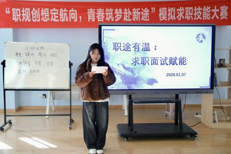 为切实提升学生求职竞争力,引导树立清晰的职业目标,1月7日,我院在仓山校区与福清校区同步举办“职划创想定航向,青春筑梦赴新途”模拟求职大赛。大赛聚焦求职全流程实战演练。选手们从专业技能、实践经历与获奖情况入手,针对模拟职场情境中的真实问题,提出切实可行的解决方案,展现出良好的沟通表达与临场应变能力。评委老师结合每位同学的表现,围绕职业规划的合理性与可行性,给予了细致、有针对性的指导与建议。