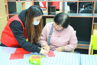 本次活动以新春传统文化为核心,通过春联书写、文化体验、暖心互动等丰富形式,将翰墨祝福与社区温情融为一体。在“翰墨迎春”书写区中,居民既能挑选经典联句,也能自拟祝福语请师生书写。与此同时,在“巧手剪纸”体验角里,志愿者们指导居民制作窗花、剪纸福字,传统手工艺的魅力尽显;在“新春谜语”活动中,居民围聚一堂竞猜谜语、兑换礼品,热闹的氛围使传统文化的魅力悄然生根。不仅如此,此次活动还特别设置“暖心驿站”,支部师生与居民亲切交谈、聆听故事、共写新年心愿,还将“暖冬礼包”赠予居民,让节日的温暖与关怀在笔墨交融和笑语问候中浸润到社区每个角落。