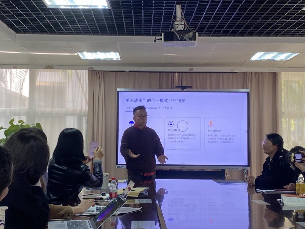 张航老师结合当前智能经济新形态,对OPC一人创业的市场趋势进行补充阐释。他指出,随着AI智能体的快速发展,“单人驱动+AI协同”的OPC创业新范式已成为创业新风口,结合OpenClaw等AI工具的应用案例,深入分析了OPC“轻资产、快迭代、深垂直”的核心特征及发展前景,建议全体教师在教学中主动融入前沿内容,进一步拓宽学生创业视野。