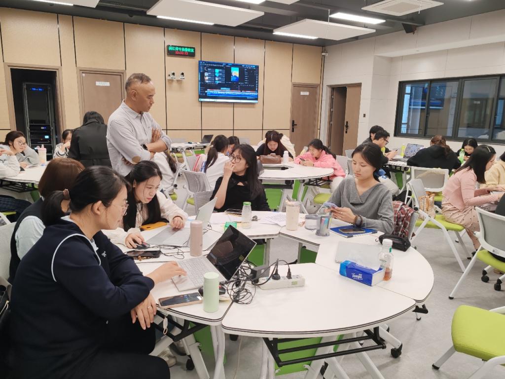 在实操环节,师生分组模拟直播电商核心岗位,基于企业真实工单,在企业导师引导下,完成账号搭建、内容策划、实地拍摄、视频剪辑、直播模拟等通关任务,沉浸式体验直播电商全链路环节,实现了从理论认知到商业实战的跨越。整场培训内容紧凑、注重实效,现场互动频繁,学习氛围浓厚。