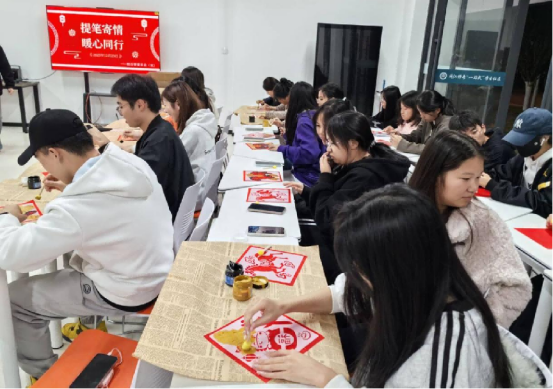 12月30日,大学生心理健康中心和校自律委员会在三校区开展“提笔寄情,暖心同行”元旦迎新活动,共250余名同学参加。活动现场,同学们或凝神挥毫,将对新年的期许、对亲友的祝福凝于笔端,在笔墨流转间感受汉字书法的独特韵味;或自选心仪模板拓印创作,红黑相映、红金点缀的经典配色,让每一幅作品都洋溢着节日的喜庆氛围。完成的作品既可自留珍藏,定格此刻温暖;亦可赠予同伴,传递脉脉情谊。活动以传统文化为纽带,既让同学们感受到了传统节日的魅力,也凝聚了团队力量,让新年期许与同伴情谊在笔墨拓印间永久定格。