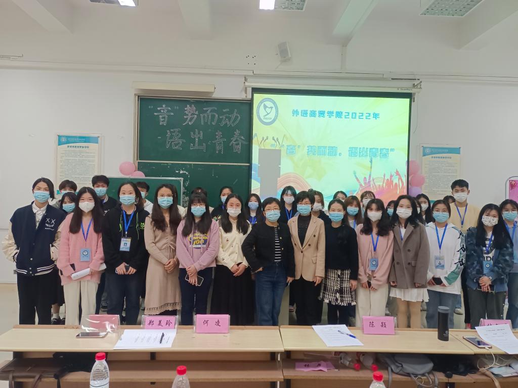 为提高外语商贸学子的人文素质和道德情操,展现当代大学生风采,外语商贸学院于2022年4月20日在教学楼1016教室举办以“‘音’势而动,语出青春”为主题的比赛。出席本次活动的有学院党总支副书记(主持)林冉、副书记陈颖、各专业老师何凌、林敏霞、王心宜、程妍以及团委学生会指导老师许璐颖、学院自律会指导老师洪扬、辅导员陈晨老师。