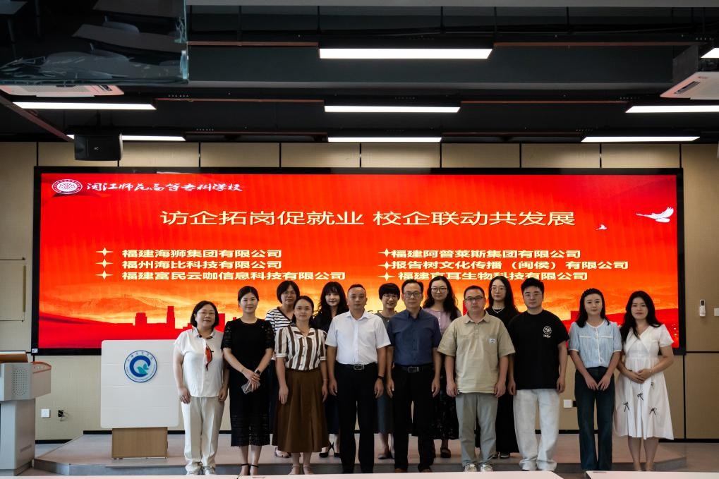 为落实教育部办公厅《关于开展全国高校书记校长访企拓岗促就业专项行动的通知》要求,深化产教融合,推动毕业生就业工作,2025年6月11日,我院在旗山校区产创楼303会议室开展“访企拓岗”座谈会。我院邀请福建海狮集团有限公司、福州海比科技有限公司、福建富民云咖信息科技有限公司、福建阿普莱斯集团、报告树文化传播(闽侯)有限公司、福建官耳科技有限公司等6家长期保持深度合作关系的企业来校参加会议。我校副校长陈强、外语商贸学院院长何少娴、副院长陈海燕、副院长刘诗雨、商贸教研室、应用外语教研室主任及骨干教师共同参会,双方就校企合作相关工作展开深入研讨。