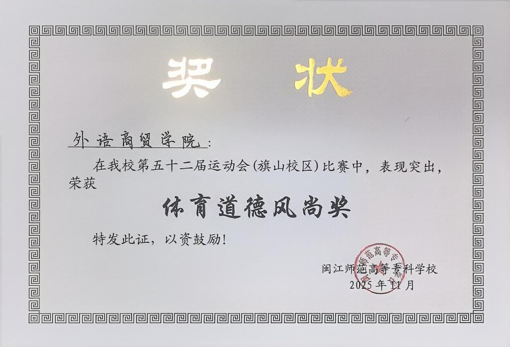 我院运动健儿凭借顽强斗志奋勇拼搏,交出了一份亮眼的成绩单。其中,我院学子陈盛隆在跳高项目中脱颖而出,以1.77米的优异成绩打破我校尘封28年的跳高纪录,用突破书写青春力量。团体项目同样捷报频传,男女子4×100米接力、4×400米混合接力、集体八字跳绳、20×50米迎面接力等赛事里,队员们默契配合、奋勇争先,均斩获名列前茅的佳绩。最终,我院不仅摘得2025级团队总分第四名、2024级团队总分第五名的荣誉,更凭借文明参赛、积极进取的风貌荣获“体育道德风尚奖”,全体健儿以汗水为墨,在运动会赛场书写下意气风发的青春风采。