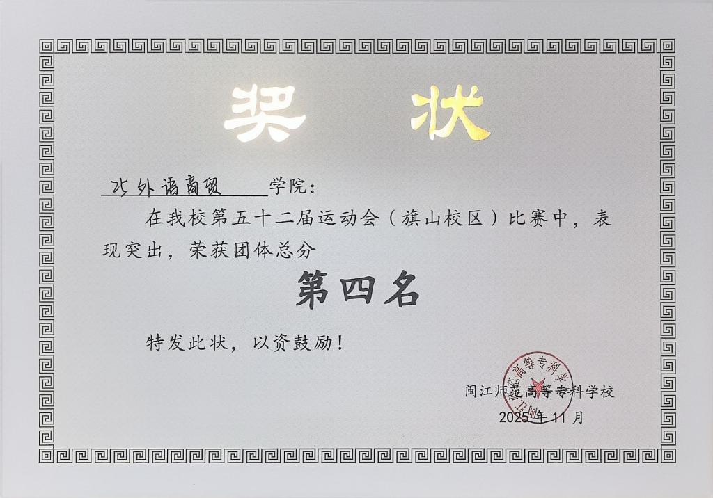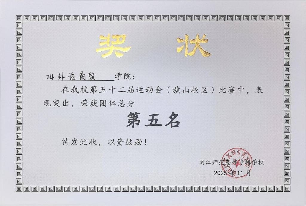 金秋送爽,旌旗猎猎迎风展;赛场聚欢,青春灼灼向阳开。11月6日至7日,闽江师范高等专科学校第52届田径运动会隆重开幕。为期两天的赛事中,我院师生齐聚绿茵赛场,以拼搏姿态诠释体育精神,用滚烫汗水书写青春华章。