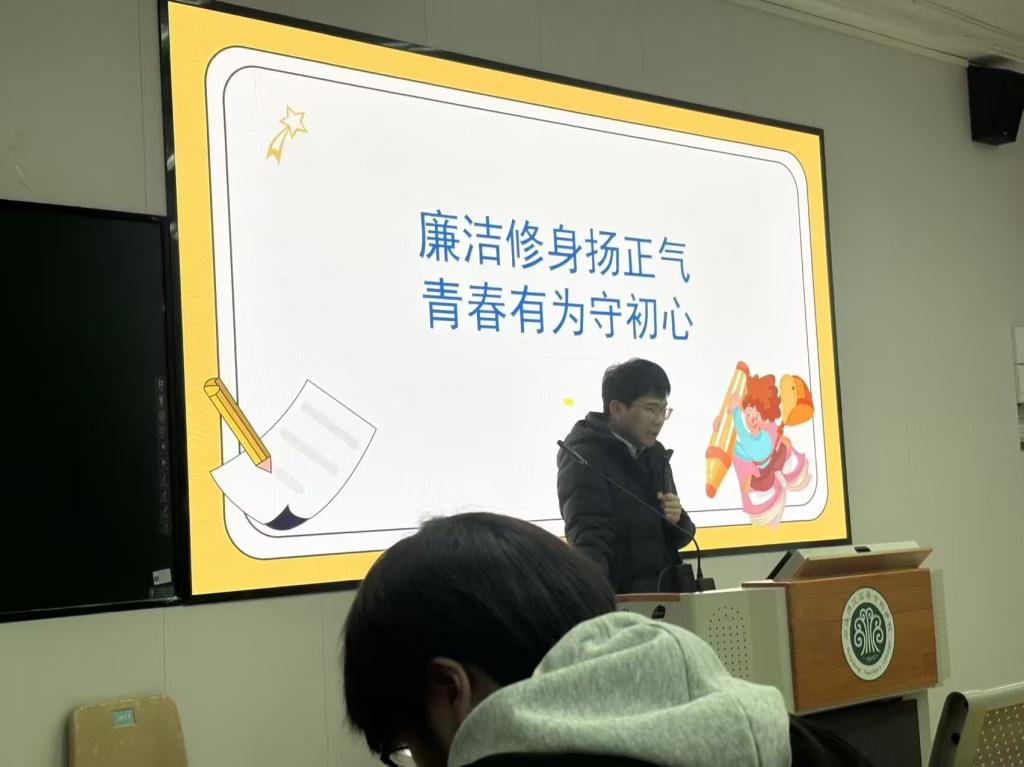本次活动紧密结合学期末和寒假离校的关键节点,内容涵盖两大核心板块。在廉洁诚信教育板块,各年级辅导员引导学生树立正确的价值观,强调在期末考试中恪守学术诚信,坚决杜绝作弊行为,以真实学识检验学习成果;在日常生活中弘扬勤俭节约的优良传统,反对铺张浪费,合理使用压岁钱和假期兼职收入;同时,辅导员还通过案例警示,提醒学生在网络空间和社交活动中自觉抵制不良风气,不参与任何形式的非法活动,筑牢拒腐防变的思想道德防线,争做清正廉洁的表率。
