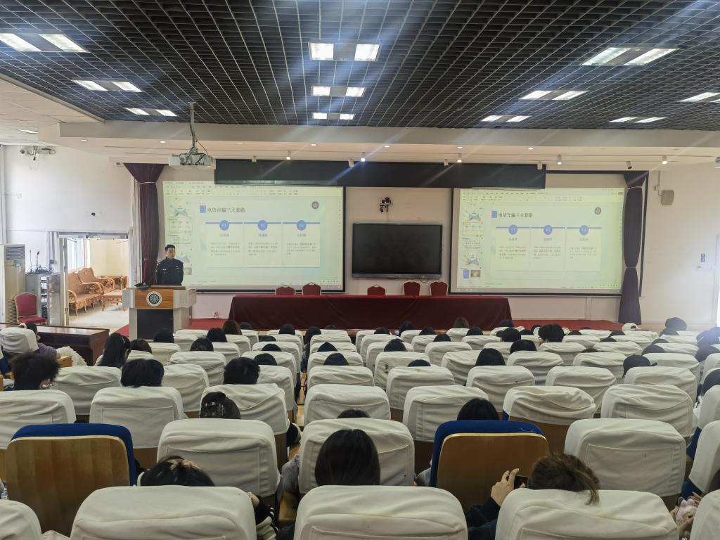 为筑牢校园反诈安全防线,守护学生财产安全,3月18日下午,外语商贸学院特邀福州市公安局上街(高新区)公安分局长安派出所社区中队指导员许杰峰警官,在2018教室开展“筑牢反诈防线,守护青春校园”反诈安全专题宣讲,全院学生到场聆听学习。