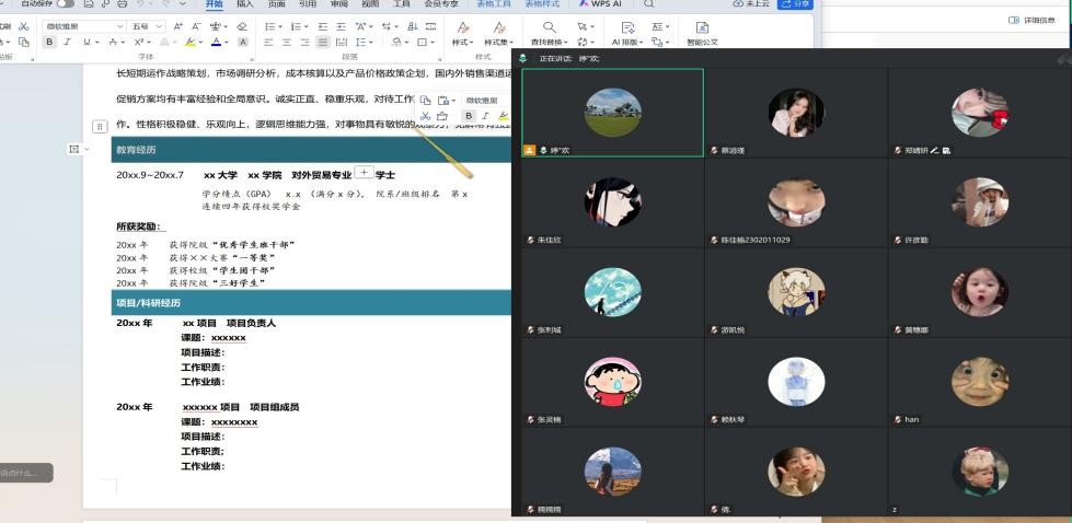 2026年3月30日晚,外语商贸学院毕业班班导师面向毕业班学生开展就业简历制作指导主题班会。班会通过网络会议形式进行。