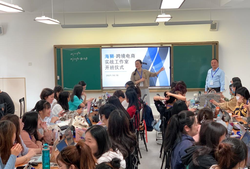 2021年10月18日上午9点,外语系与福建海狮集团共同开设的“海狮跨境电商实战工作室”正式开班。出席开班仪式的有海狮集团育才中心主任兼汇智众创商学院院长刘小清先生、商贸教研室主任陈海燕老师、海狮跨境电子商务工作室班主任郭瑜婷老师,以及参与工作室的75名同学。
