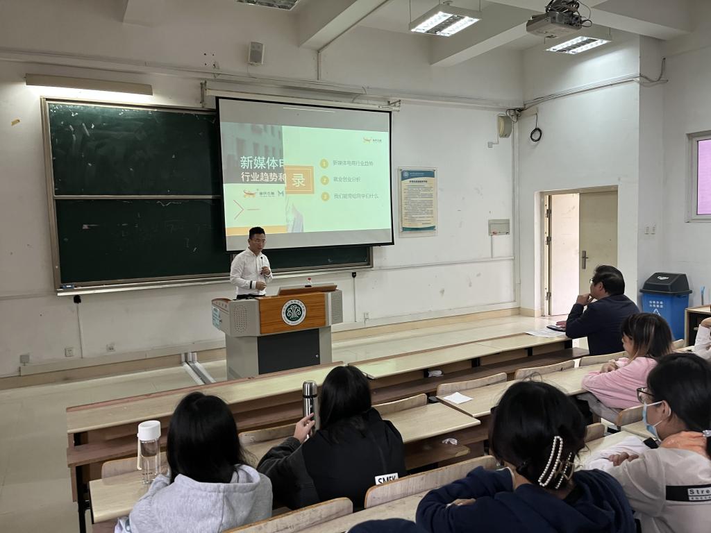 宣讲会上,林凡凡总经理从新媒体电商行业趋势、就业创业环境分析以及能给学生带来什么这三个方面的内容进行介绍,同学们也对此非常感兴趣,此次宣讲会取得圆满成功,会后初步有75名学生进行了预报名。